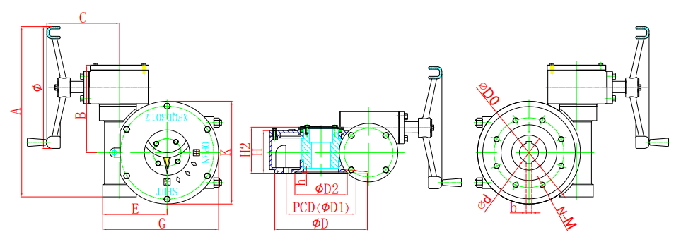 該系列蝸輪箱適用環境廣、功能全面、形式多樣(有手輪式、手輪帶鎖式等),產品共有7種型號。